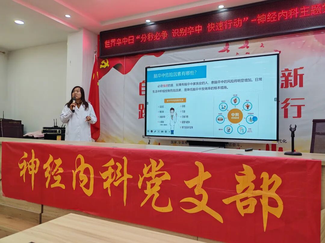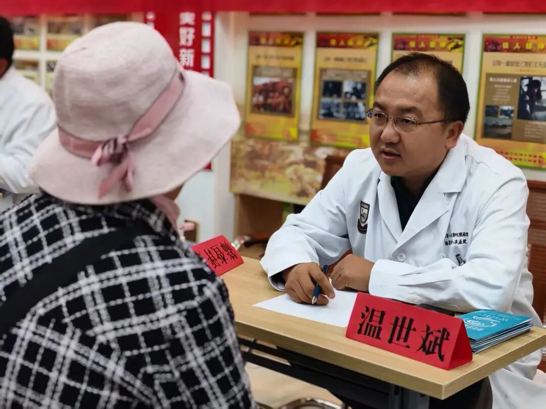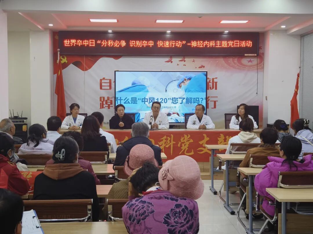 【医疗动态】重阳送健康——神经内科党支部走进官北沟社区开展脑卒中义诊主题党日活动发表时间:2025-10-24 10:10 为切实提升社区居民对脑卒中疾病的防治意识,在重阳节来临之际,10月22日下午,神经内科党支部在支部书记宋子敬的带领下走进西北街街道官北沟社区,开展了以“分秒必争,识别卒中,快速行动”为主题的义诊宣教党日活动。