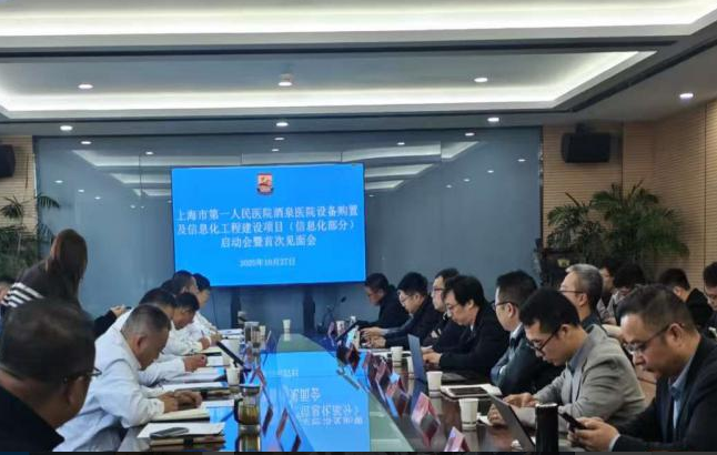 【医院要闻】我院启动设备购置及信息化工程建设项目(信息化部分)首次见面会发表时间:2025-11-03 11:02 10月27日上午,我院组织召开上海市第一人民医院酒泉医院(酒泉市人民医院)设备购置及信息化工程建设项目(信息化部分)启动会暨首次见面会。院党委书记李国强、党委副书记、执行院长高臻出席会议并作工作部署,副院长郭百海主持会议。常务副院长冯鲜妮、党委副书记贾晓波、纪委书记李贞,副院长宋子敬、罗林云、肖志明出席会议。卫宁健康、联通数科、望海康信、甘肃蓝泰等信息化项目承建单位代表参加会议。
