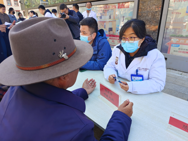 10月30日上午,迭部县水晶广场上聚集了众多前来就诊的群众。义诊现场虽人潮涌动,但在医护人员引导下,秩序井然。专家们迅速投入工作,以一张桌子、一把椅子搭建起临时诊疗台,耐心接待每一位就诊群众。针对慢性病患者,专家们逐一查看既往病历与检查报告,结合现场检查结果调整用药方案,并叮嘱日常饮食、运动及血压血糖监测要点;对于腰腿疼、关节炎等骨关节疾病患者,专家们不仅给出专业诊疗建议,还贴心标注康复锻炼的关键步骤;针对外科、儿科常见病症,专家们详细分析病因,提供个性化诊疗方案,使群众在家门口即可享受到“上海水准”的医疗服务。“以往患有疑难病需前往兰州、成都就医,如今上海市第一人民医院酒泉医院的专家直接到县里来,既无需长途奔波,又能获得专业诊断,着实为我们解决了大难题!”一位患者在接受专家诊疗后激动地表示。据统计,此次义诊活动累计接诊患者200余人次,提供健康咨询300余人次,开展疑难病例讨论