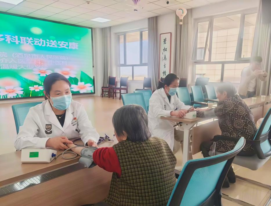 【党建之窗】九九重阳敬老情 多科联动送安康——我院多学科党支部联合走进心怡康养老院开展重阳节义诊活动发表时间:2025-11-03 11:19 岁岁重阳,今又重阳。为深入贯彻落实习近平总书记关于老龄工作的重要指示精神,切实推进老年人健康中国建设,在重阳节前夕,我院老年医学科介入医学科党支部联合中医科党支部,赴酒泉市心怡康养老院开展"九九重阳敬老情,多科联动送安康"主题义诊活动,以实际行动践行社会主义核心价值观。