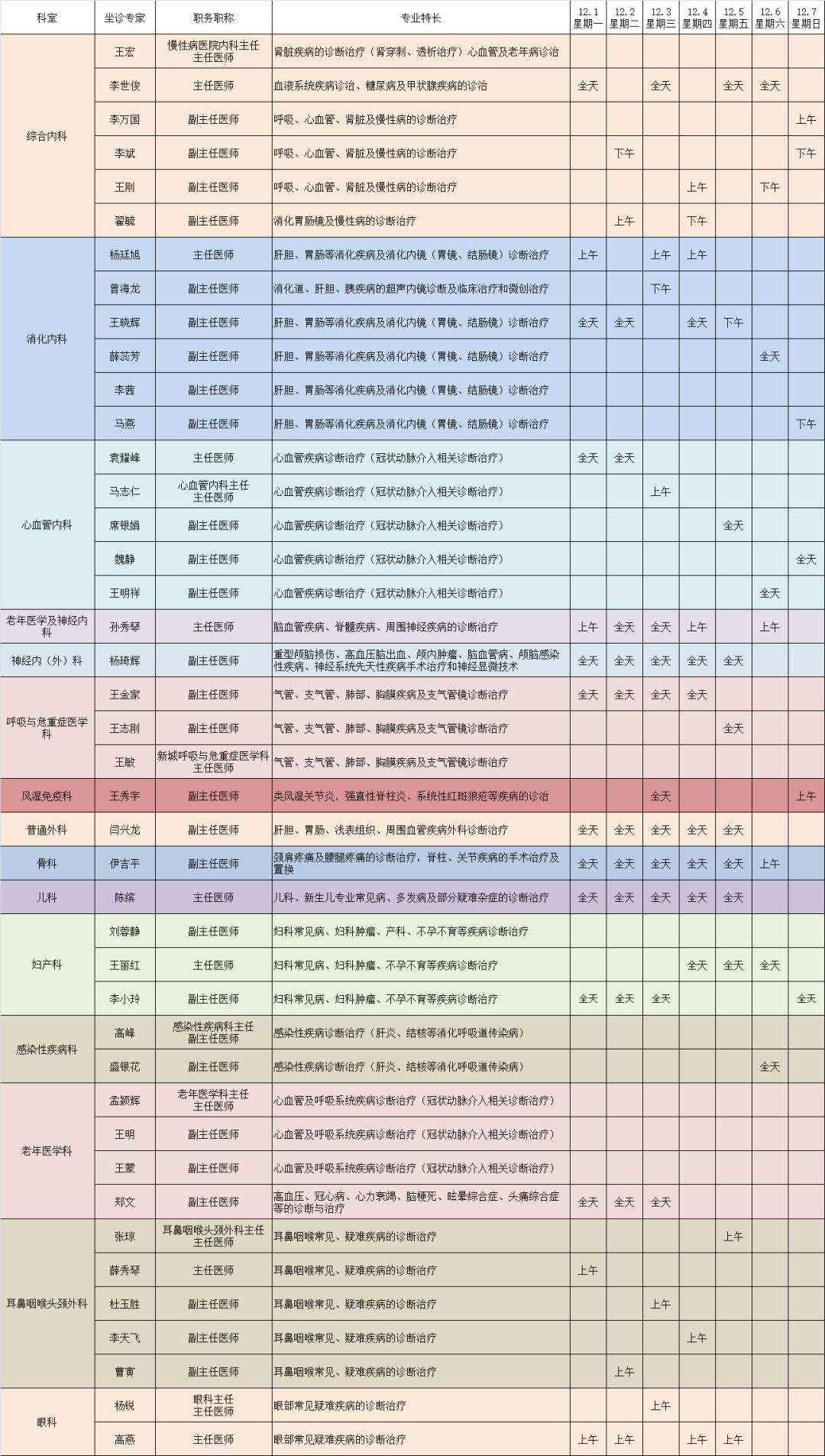 上海市第一人民医院酒泉医院(酒泉市人民医院)12月1日—12月7日专家门诊时间表来啦,挂号就看这条~